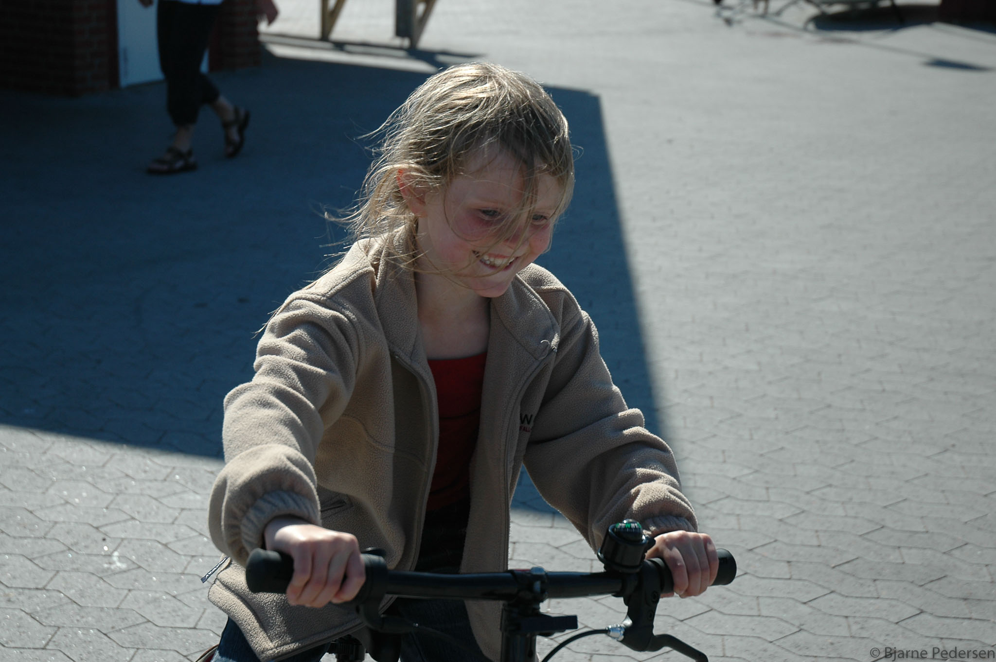 Oda og Anja har hver sin sykkel med, Anja sin nyinnkjøpt for anledningen. Den første sykkelopplæringen ble gitt i Skudeneshavn, og etter noen vaklende meter med støtte fra mamma på kaien i Sæby kom seierssmilet frem. Dette var da ingen sak.