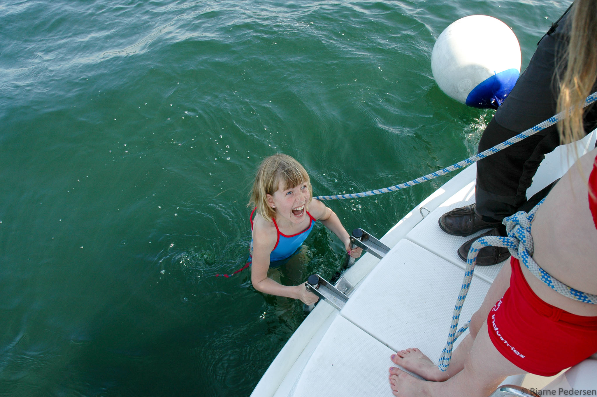 Etter en avslappende ettermiddag med god mat og drikke legger vi kursen sørover til Samsø. Dette er den første fine dagen, og flere drister seg til å ta på seg skjorts. Langør var en flott perle. Vi gled inn til kaien mens nabobåtene duvet i sjøen med mannskapet solslikkende på dekk. Denne kvelden tar vi med oss grillmat, går inn på stranden og griller. Tina har laget sin potetsalat som ingen andre kan, og vi har en koselig kveld på stranden. Ungene leker med gummibåten og vasser og småbader i det litt kjølige vannet.