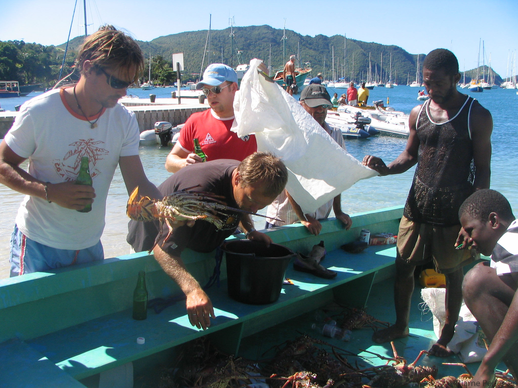 Ved solnedgang klokken seks om ettermiddagen samlet alle skandinaver seg på stranden for å spise julemiddagen. Vi hadde leid Willy til å arrangere grillfest på stranden for oss. Han hadde satt opp bord og benker og grillet masse deilig mat til oss, kylling og svinekjøtt. Willy, den hyggelige smykkemakeren, kunne daglig observeres der han seilte i den litte båten sin for å selge smykkene sine til seilerne.